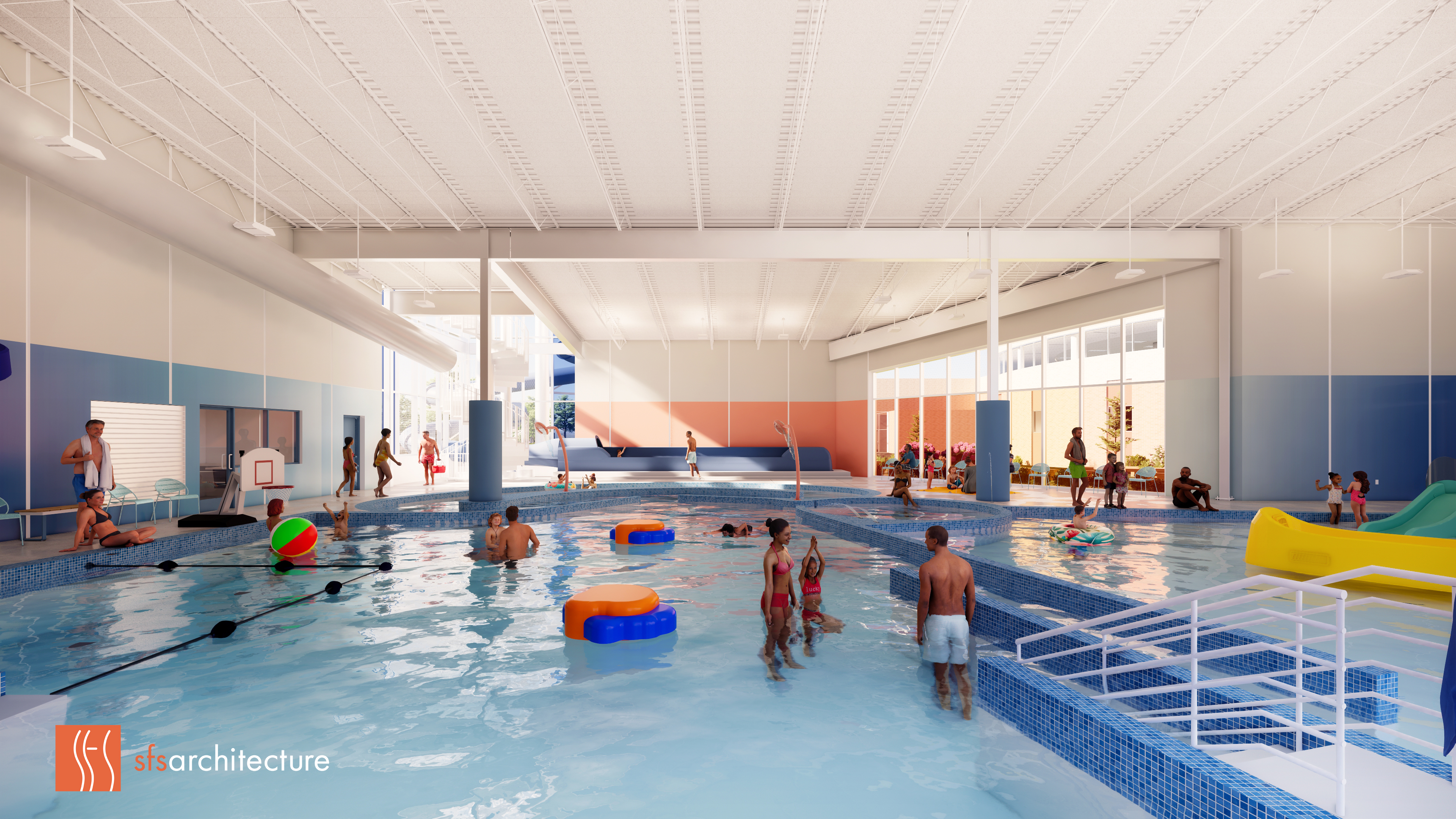 These new bodies of water will expand the functionality of The J’s aquatics center and provide spaces for swimming, therapy, play and relaxation. Family changing rooms, pool deck lockers and birthday party spaces will further improve the overall experience.
