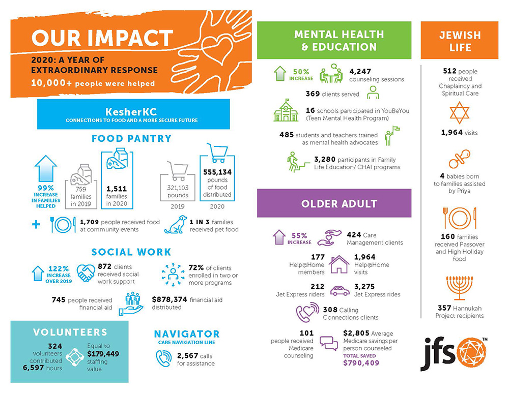 Jewish Family Services of Greater Kansas City (JFS) has released its 2020 Gratitude Report, A Year of Extraordinary Caring, highlighting the explosive growth of the organization in meeting the needs of the community.