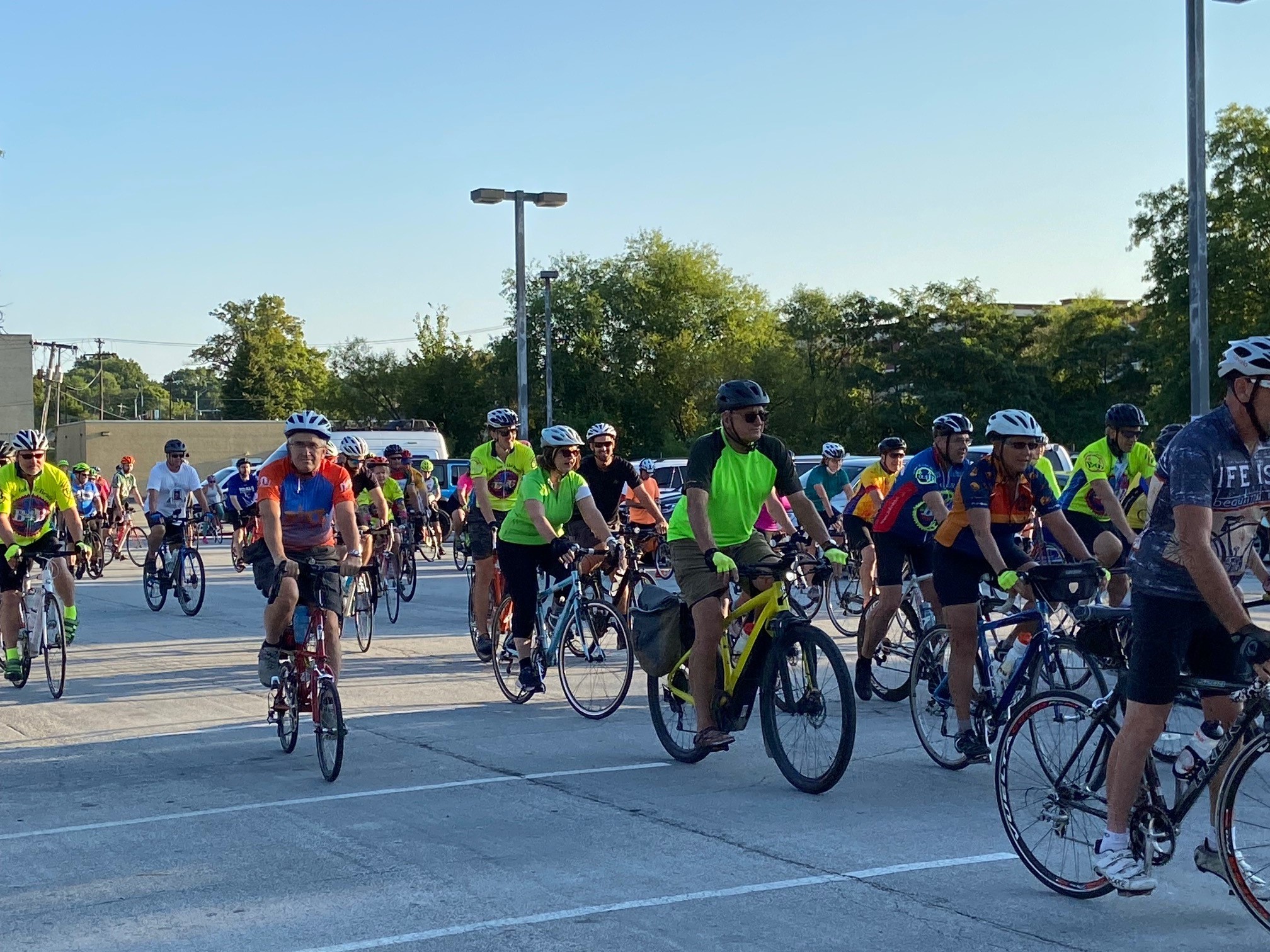 This year, cycling courses include 10, 34, 55, and 65 mile options. The start/finish line will be at Johnson County Mental Health Center at 6000 Lamar Ave., Mission, KS. On-site registration will be at 7 a.m., and the ride will begin at 8 a.m. After the ride, there will be a Chris Cakes pancake lunch.