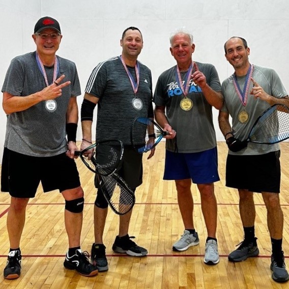 In addition to out of town competitors, several J members also participated. Four such players made it to the finals of the A Division in doubles. The team of Barry Fishman and Tyler Richard defeated the team of Jay Harms and Tony Totta to take first place in the A Doubles Division. J member Rosco Halsey and his partner Bradley Rogers won the Open Doubles championship.