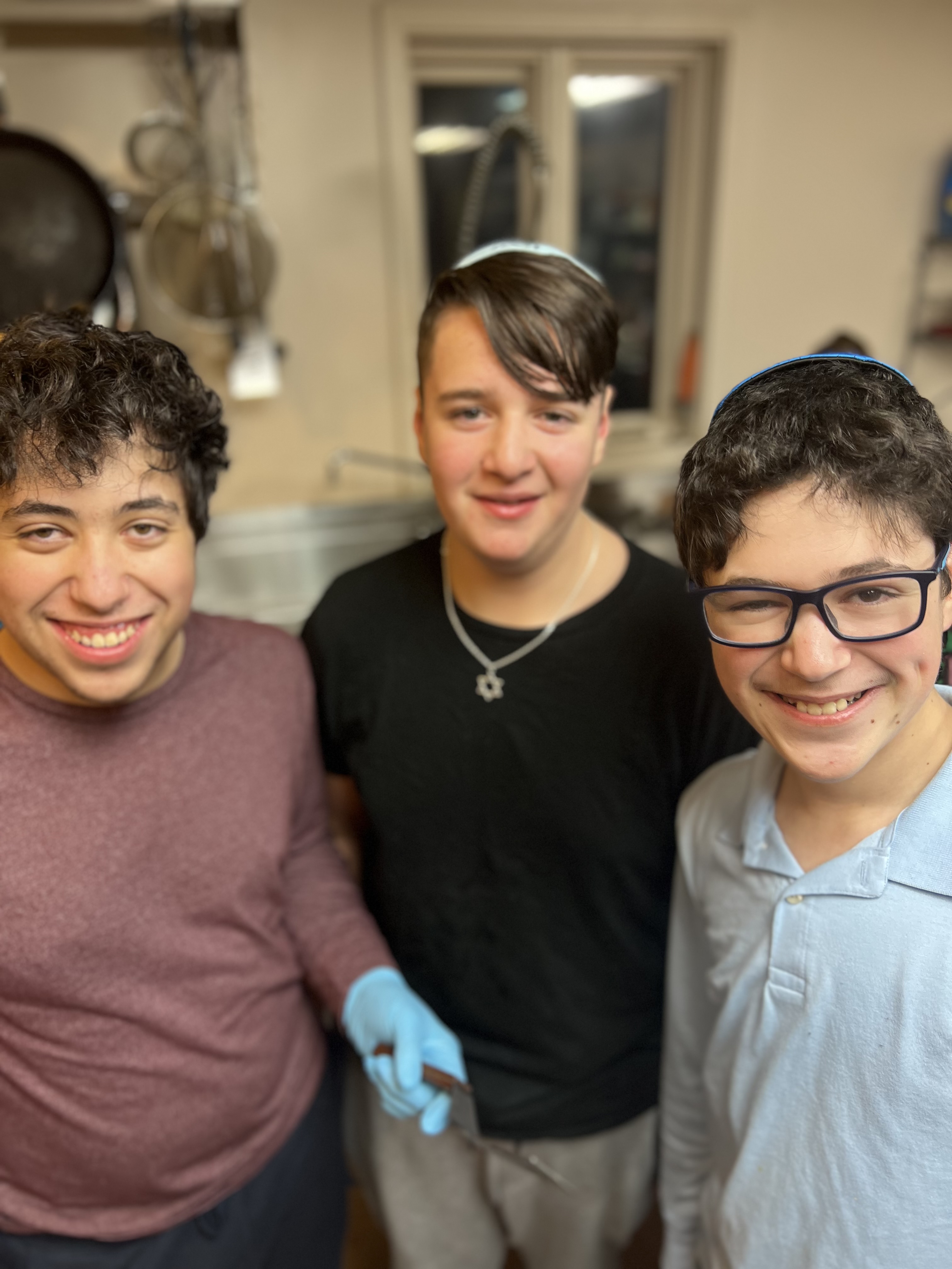 Zachary Granoff (left), Eitan Silver and Simon Granoff, the runners-up of Gather KC’s “Chanukah Latke Cook-Off.”