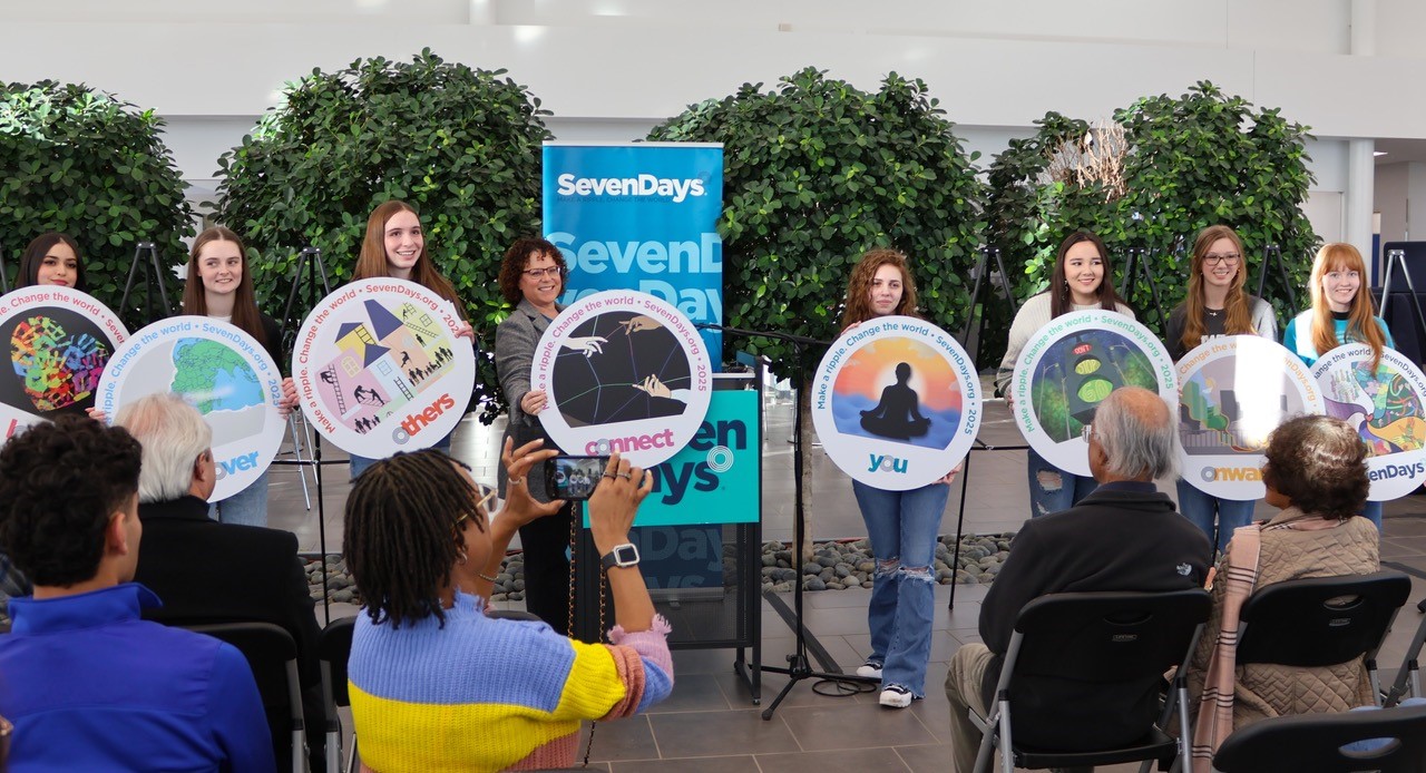 A signature of SevenDays has been distributing colorful stickers with designs reflecting each day’s theme. For the ninth year, an art-design competition took place in the fall, inviting area high school students to submit their artwork for consideration. Designs from eight different students were chosen for the 2025 SevenDays stickers. Each winner receives a $500 award.
