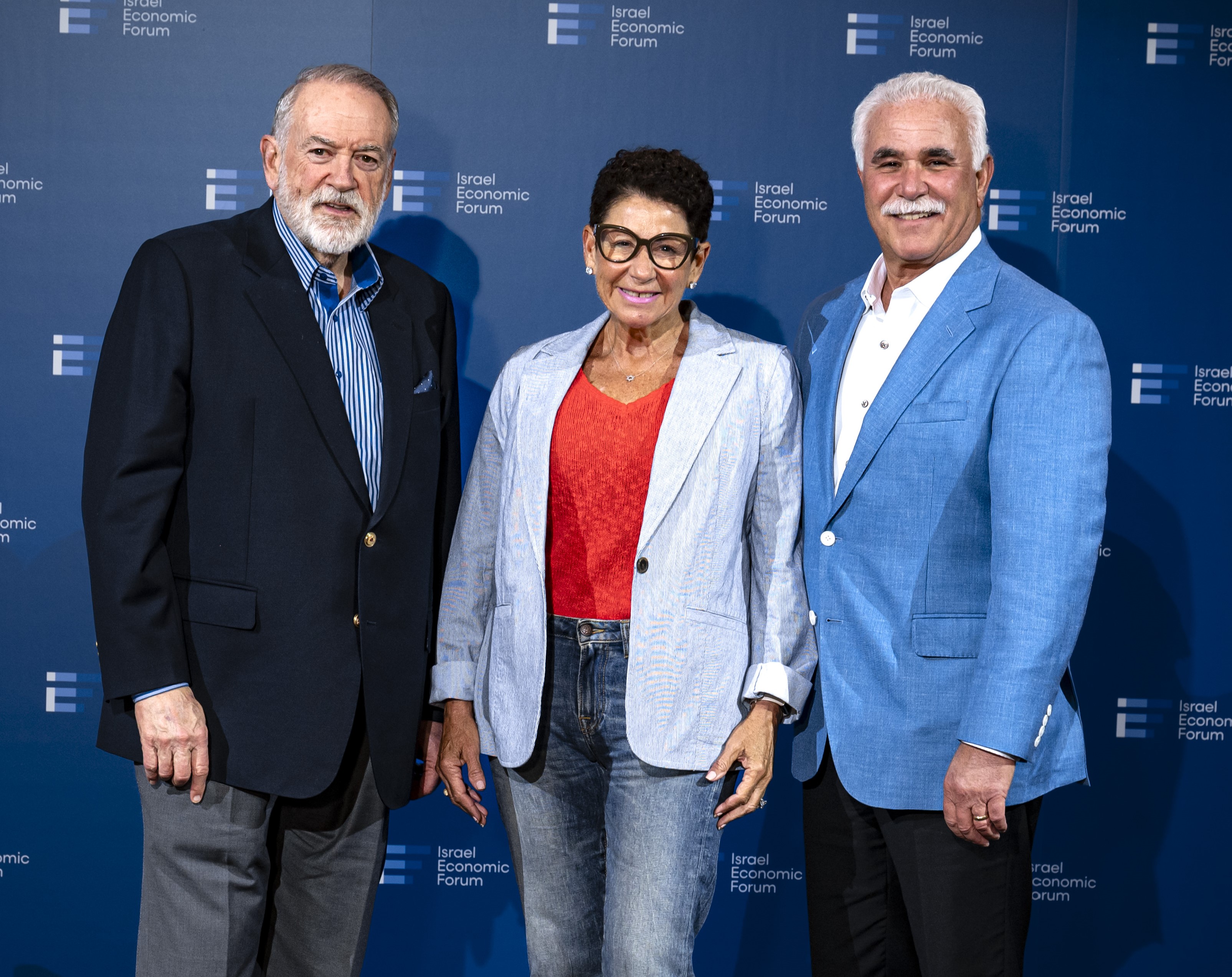 Bonnie and Matthew Siegel (center and right) with U.S. Ambassador to Israel Mike Huckabee at the Israel Economic Forum.