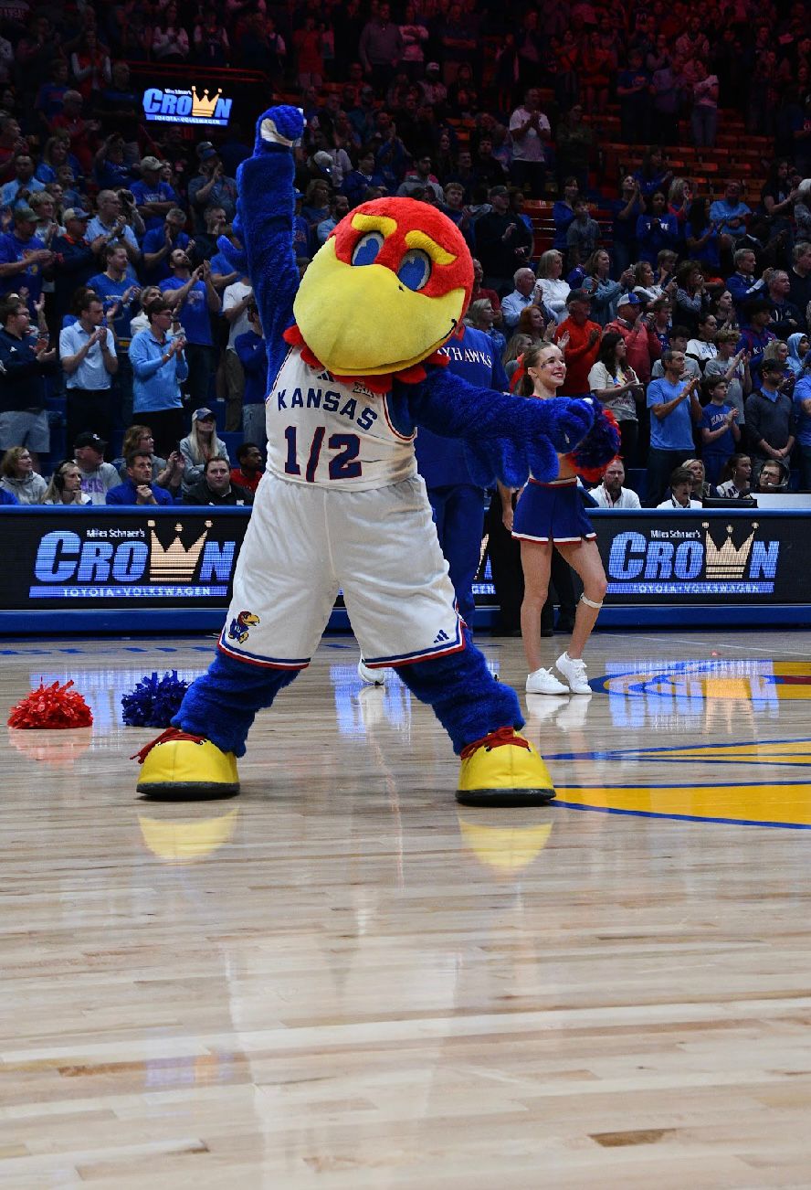 Kricsfeld’s Baby Jay engagements ranged from high-stakes Jayhawk basketball games in KU’s Allen Fieldhouse to celebrations such as weddings and b’nai mitzvah — she even put a kippah on Baby Jay at a bar mitzvah last year. She has also traveled across the country for mascot camps and for KU media opportunities.