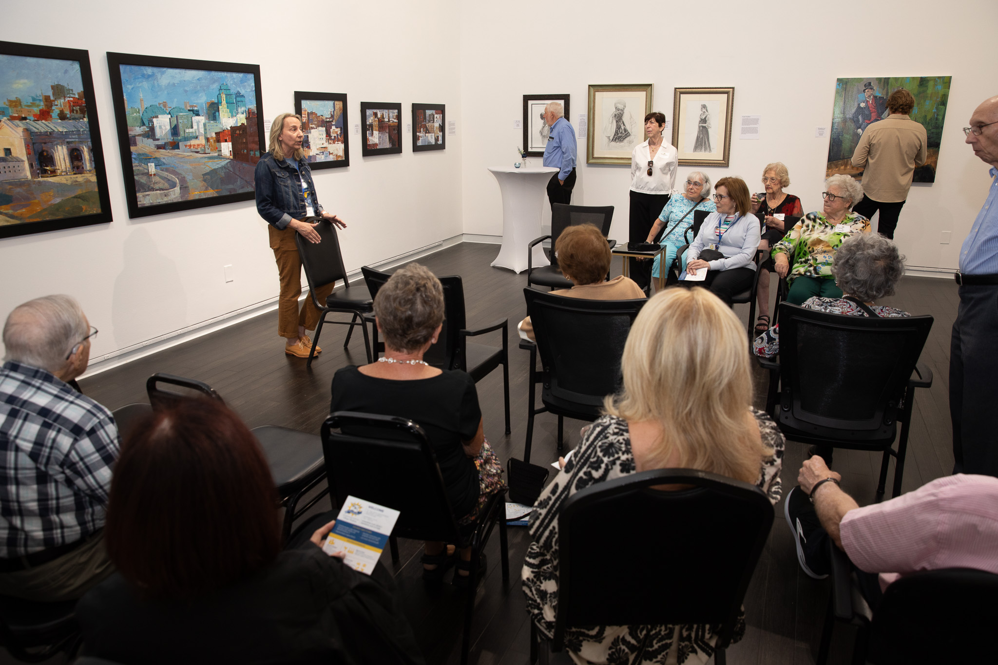 Attendees gathered for a presentation in the Epsten Gallery at Village Shalom.