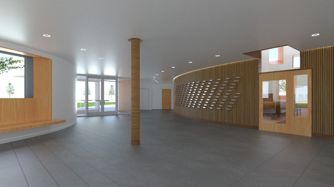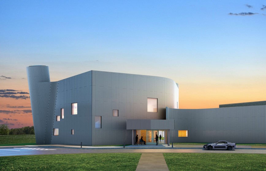 The new sanctuary will be an addition on the northwest side of the current Beth Shalom building. It will be cylindrical and covered with corrugated metal panels, designed to look like an unfurling Torah scroll. Two cylindrical towers will stand more than 50 feet tall, made to look as though the curled parchment of the Torah scroll is rolling inwards.