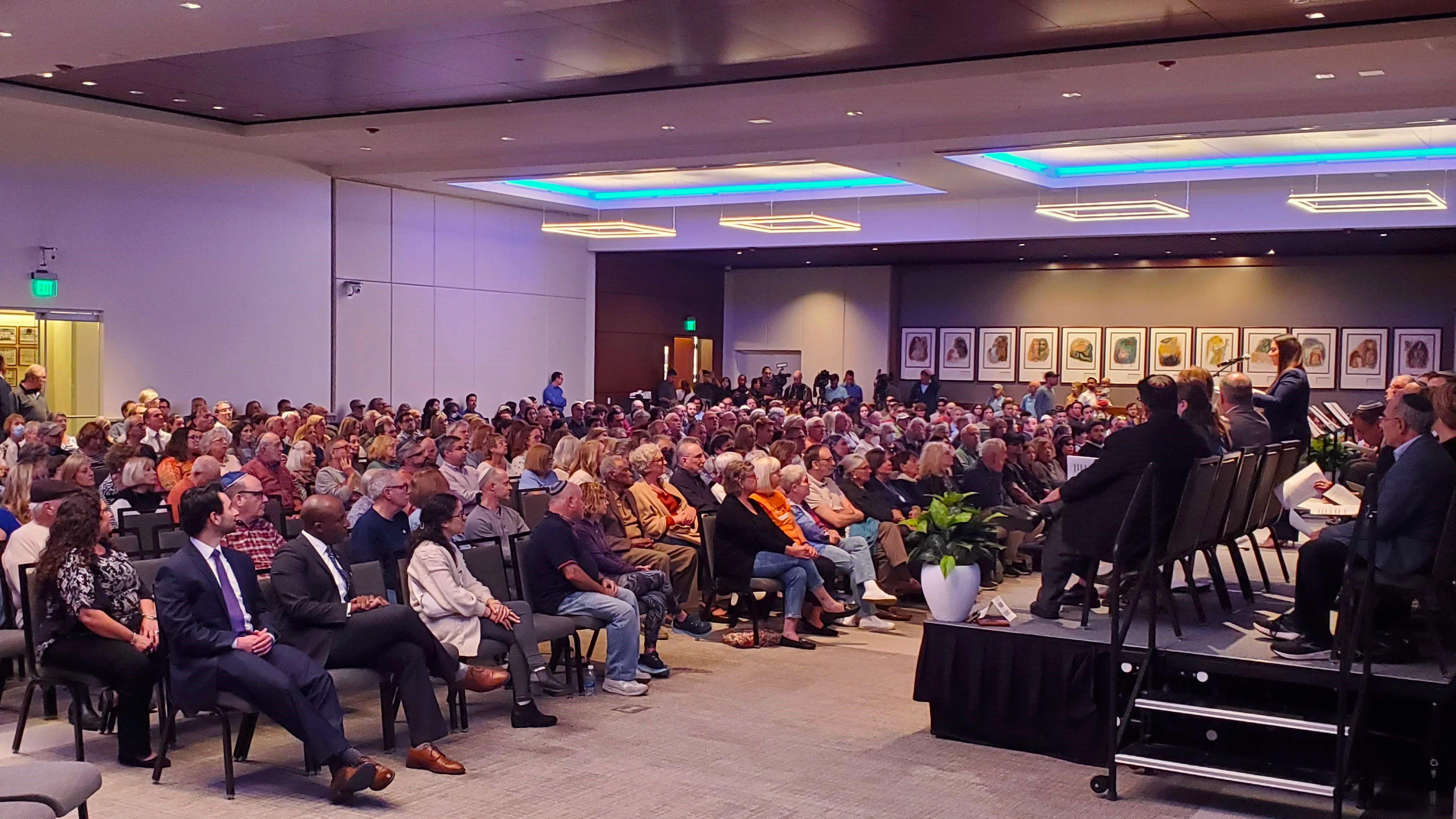 Hundreds of members of the Kansas City Jewish community gathered in support of Israel and peace on Monday evening, two days after terrorists from the Gaza Strip began murdering hundreds of Israeli civilians and taking more than 150 hostage. More than 600 people attended in person in the social hall of The Temple, Congregation B’nai Jehudah, and more than 500 watched via livestream.