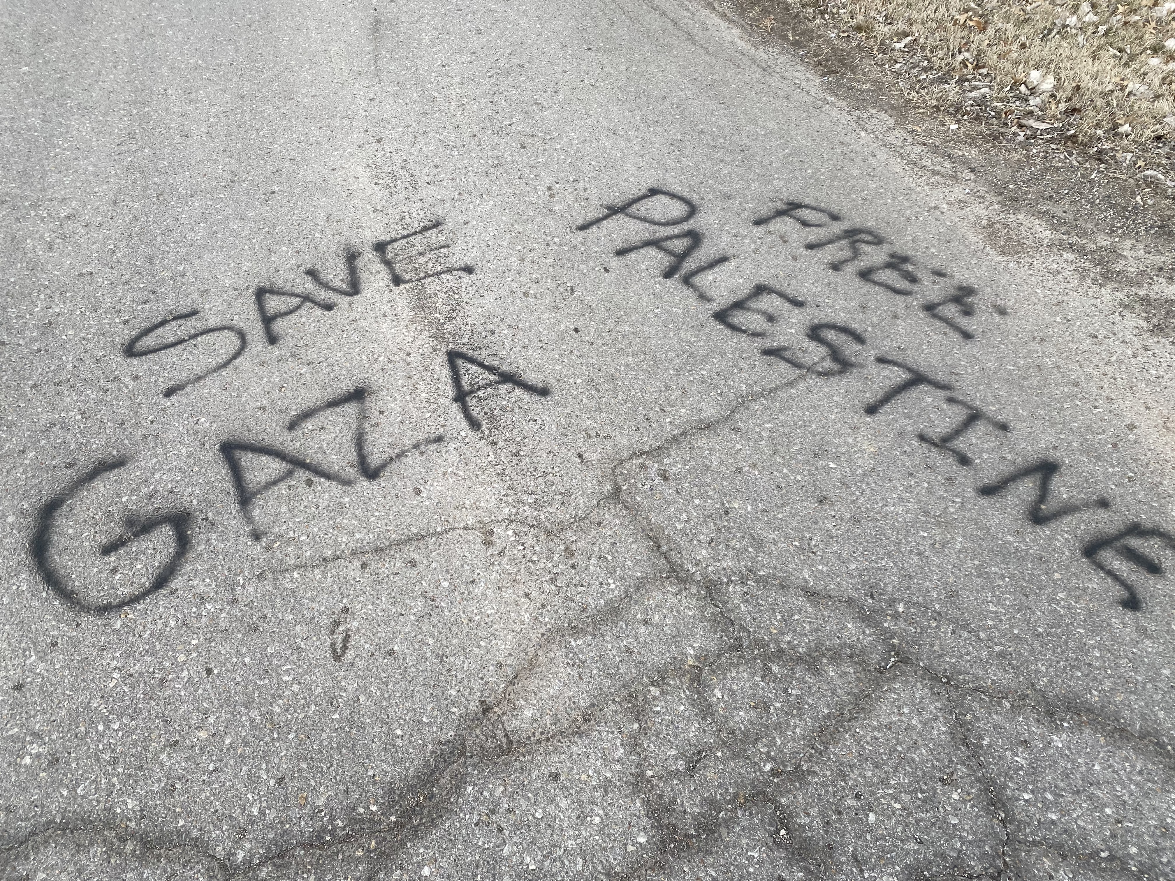 An antisemitic vandal spray painted “Save Gaza” and “Free Palestine” on a driveway leading up to Temple Beth Sholom in Topeka, Kansas, the Topeka Capital-Journal reported.