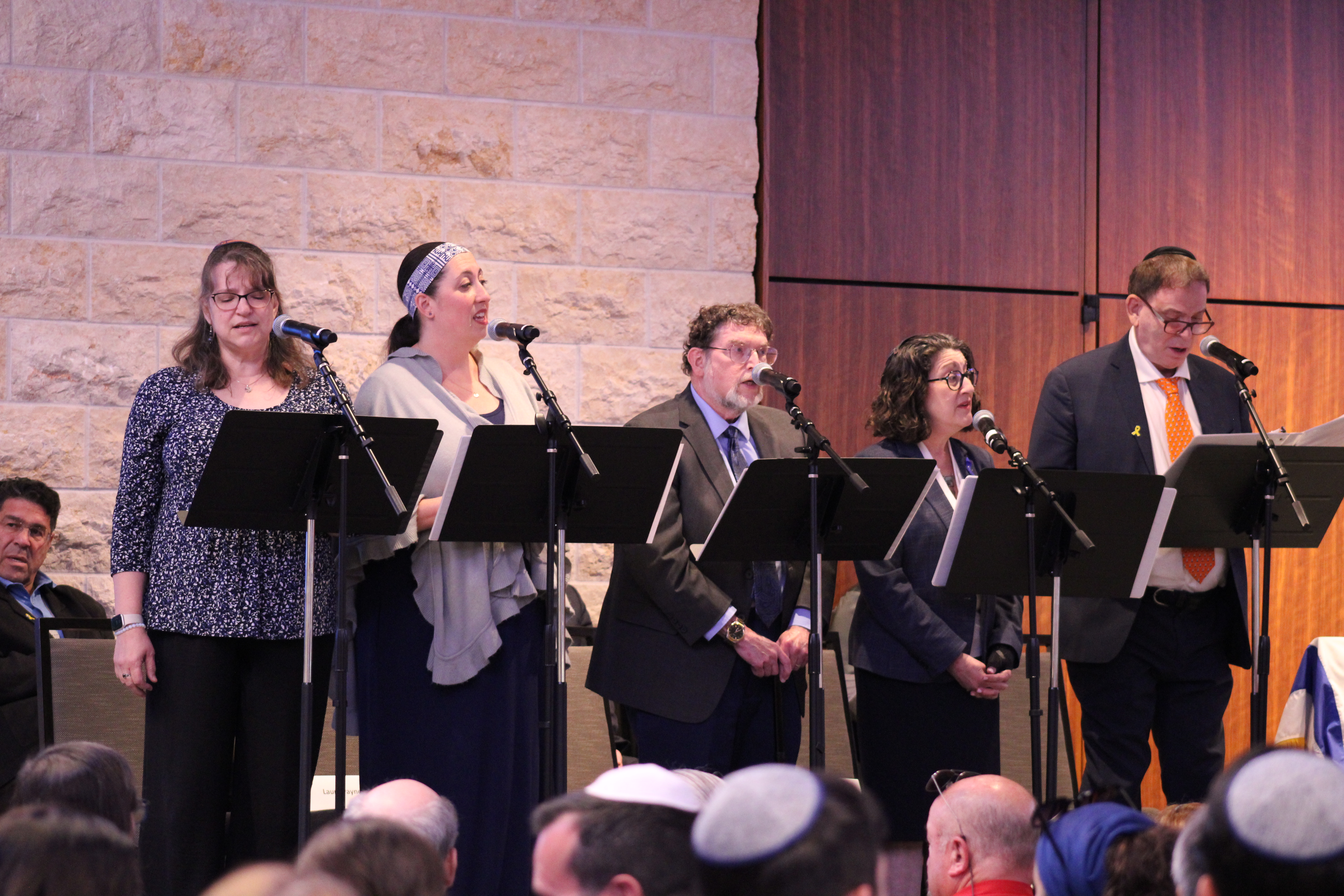 Lezlie Zucker, Laura Payne, Rabbi Larry Karol, Cantor Sharon Kohn and Cantor Aron Hayoun singing “Eli, Eli.”